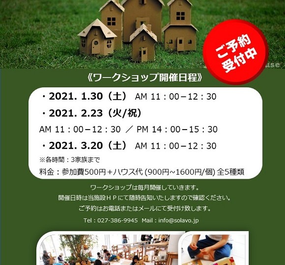 ダンボールハウス ワークショップ 1月・2月・3月開催日程
