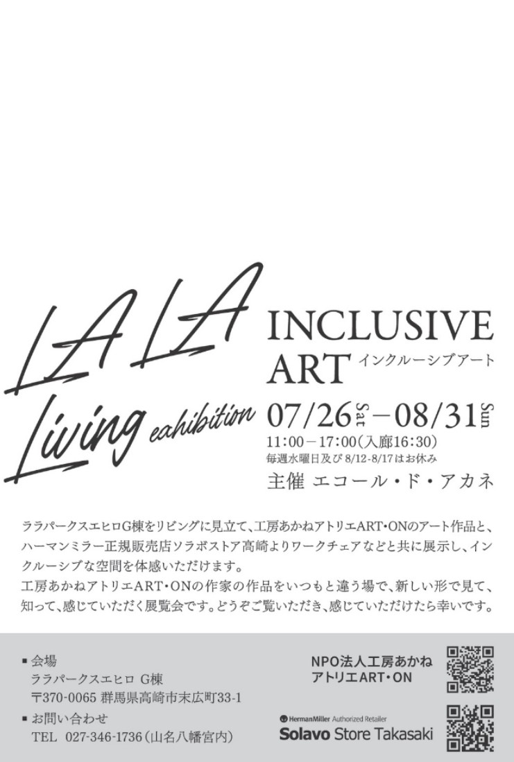 『LaLaLiving exhibitionインクルーシブアート展Ⅱ』7/26(土)より〜8/31(日)まで開催中!