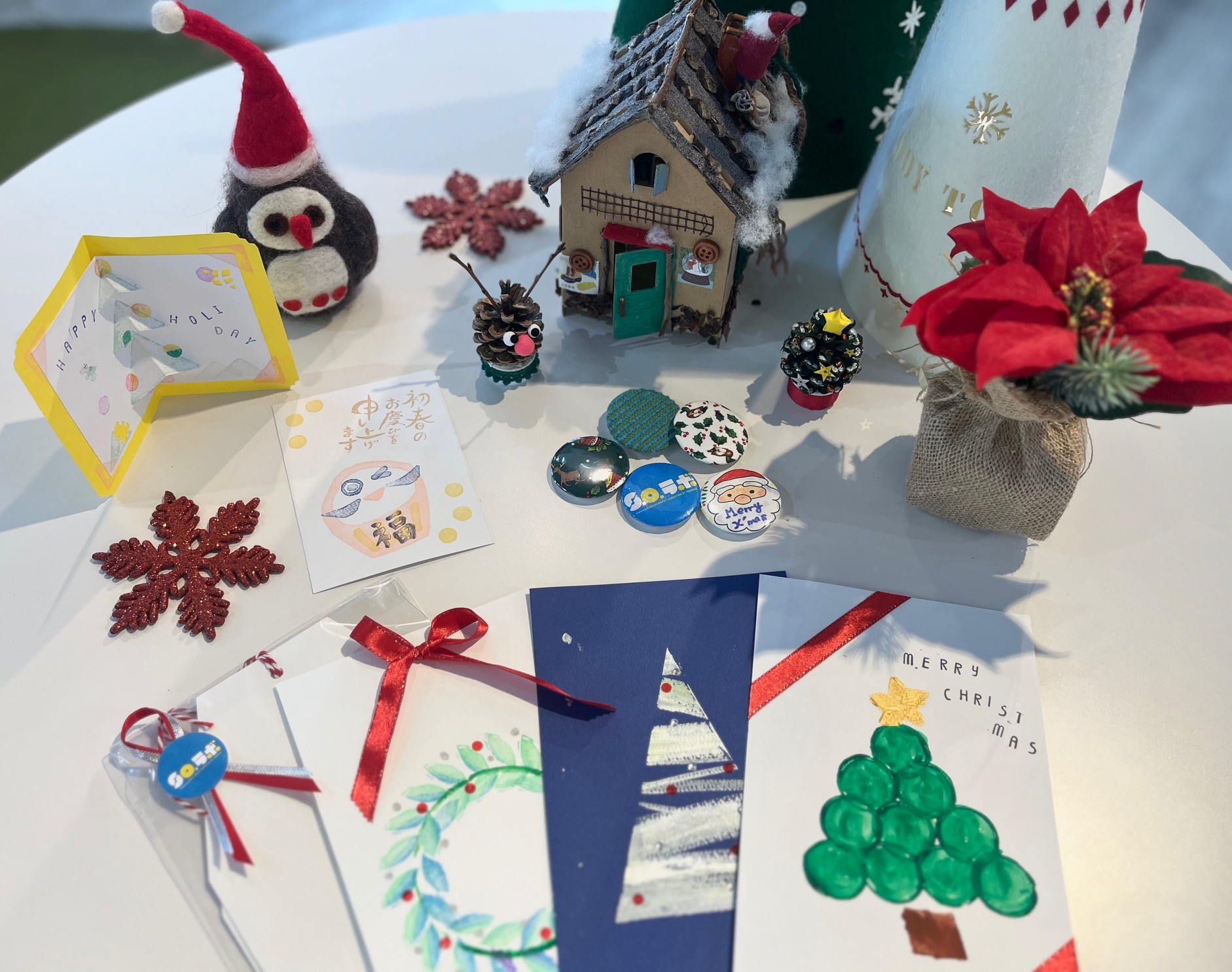 『松ぼっくりツリー作り』・『クリスマス&年賀状カード作り』・『缶バッジ作り』等のワークショップの中から、お好きな体験を2つお選びください!