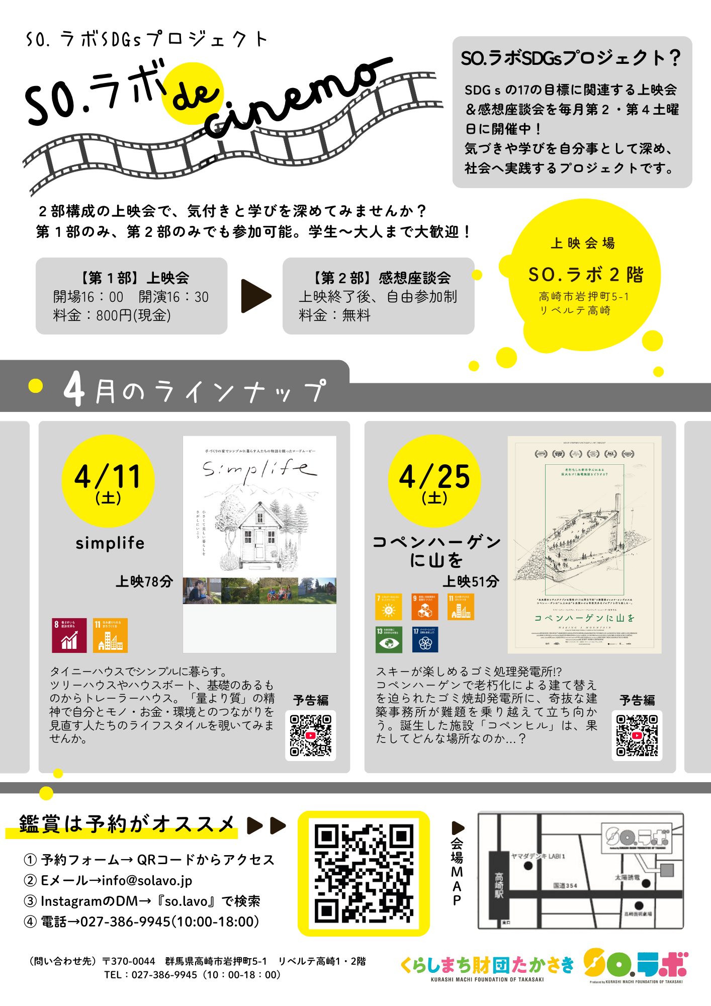 私たち「SO.ラボ SDGs 実践プロジェクト」ではSDGsの17個の目標に関連する映画や企画を通じ、気づき、学びを社会へ実践し自分事として深めていくプロジェクトを実施しております。